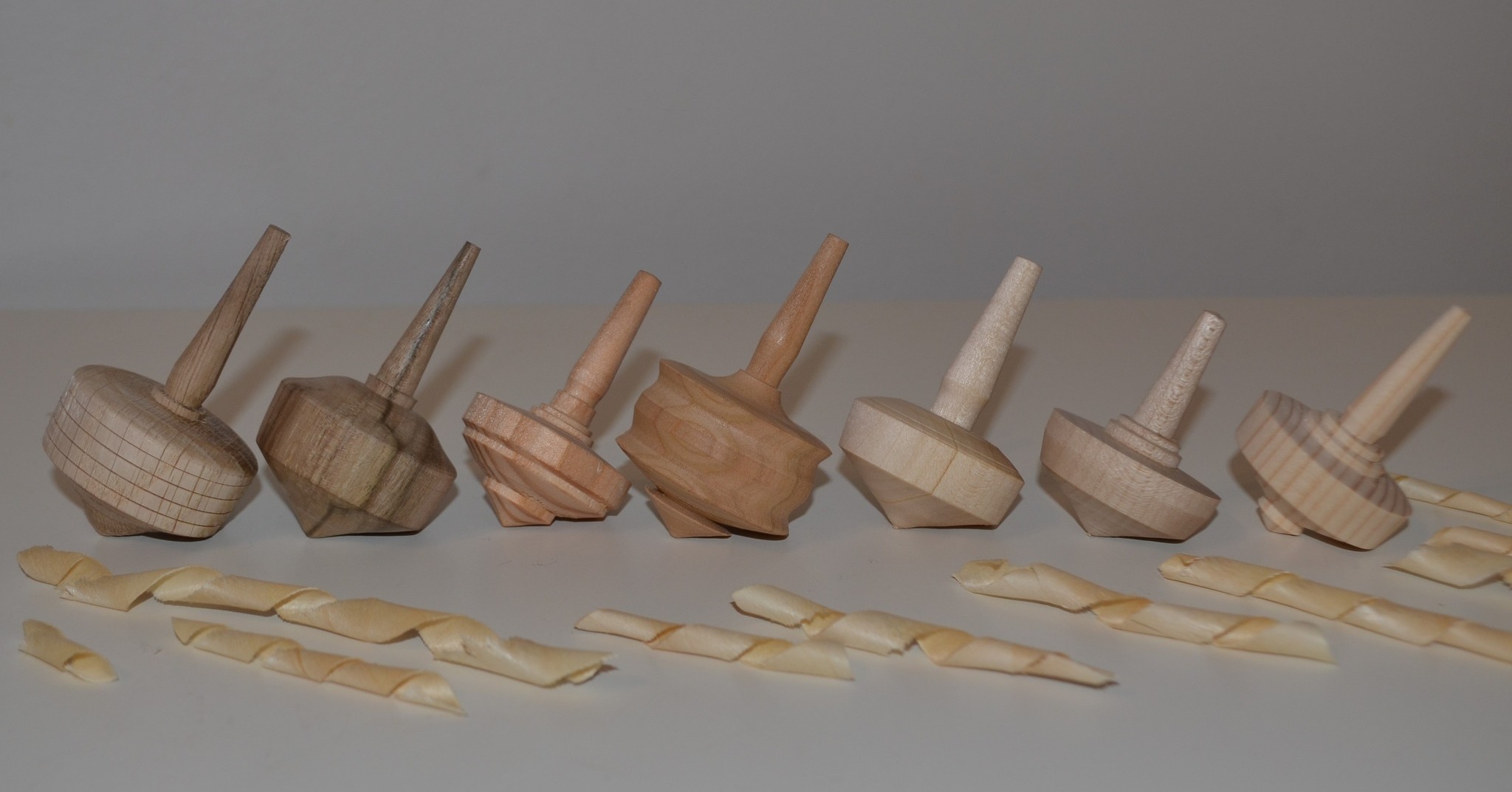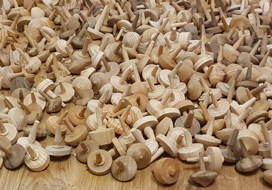 Po kilku dniach toczenia powstało 620 bączków. Główną wytyczną była wielkość ok 4 cm. Powstały z kilku rodzaju drewna: dąb, orzech włoski, modrzew, czereśnia, lipa, świerk, jawor. Każdy inny by łatwiej było je odróżnić.